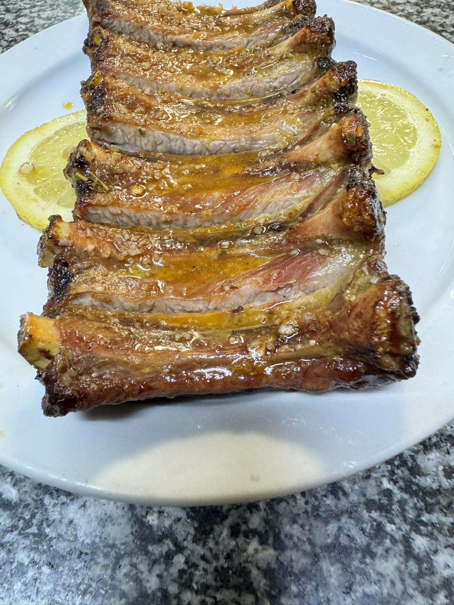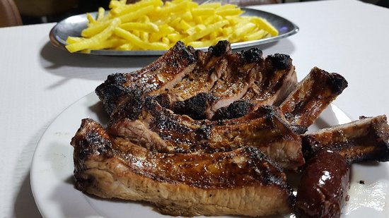 Costelinhas excelentes sempre a serem servidas em pequenas quantidades para estarem sempre no ponto e quentes.